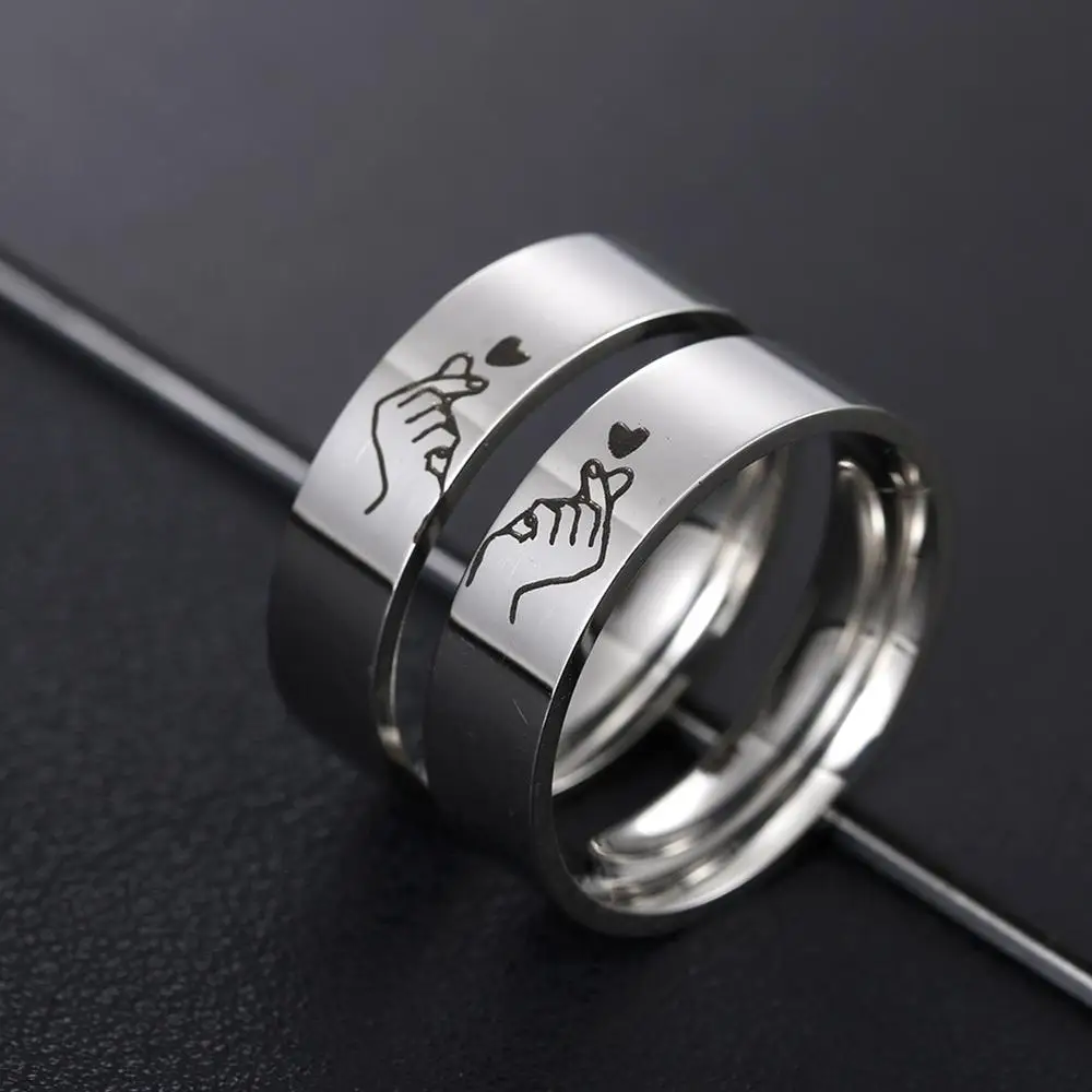 Name: Anillo de acero inoxidable con letras, de Color plateado diseño romántico, corazón, boda, pareja, regalo de San Valentín, 2020